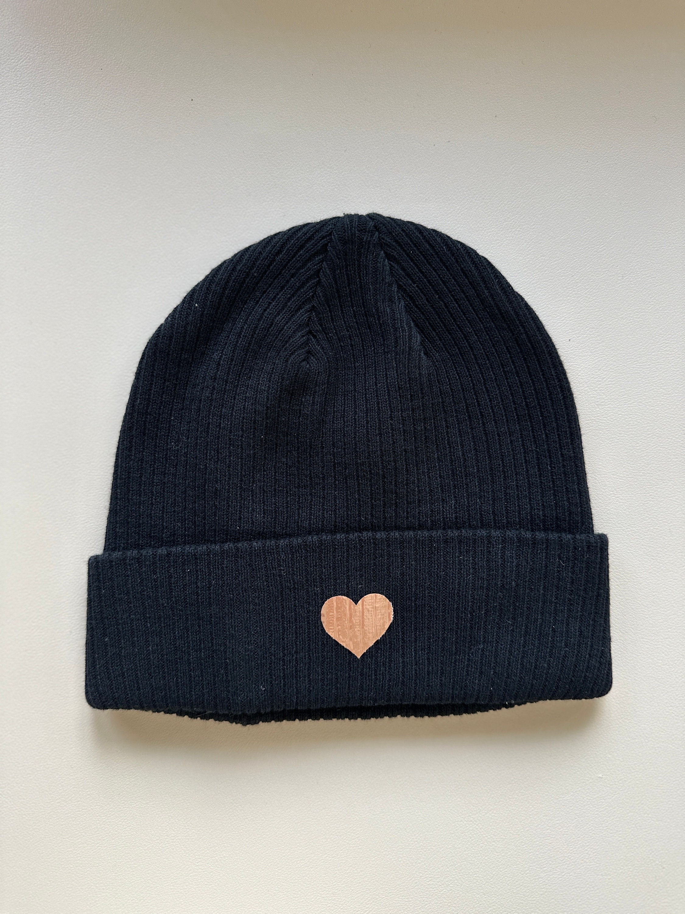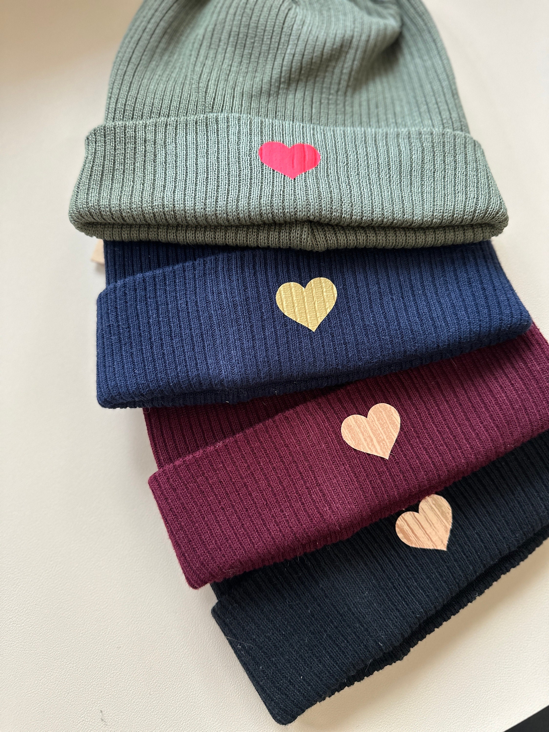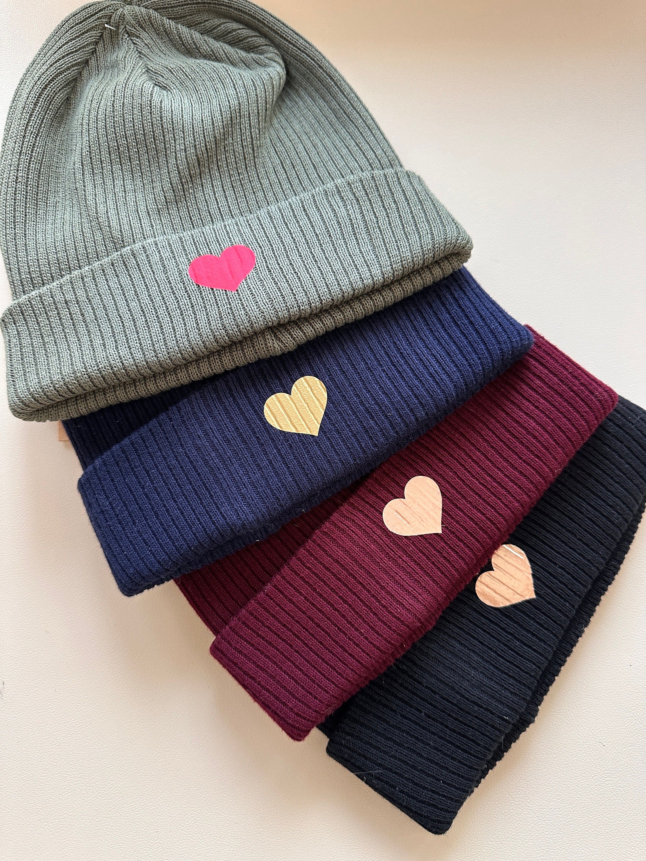 Super soft beanie with hearts made from organic cotton, unisex