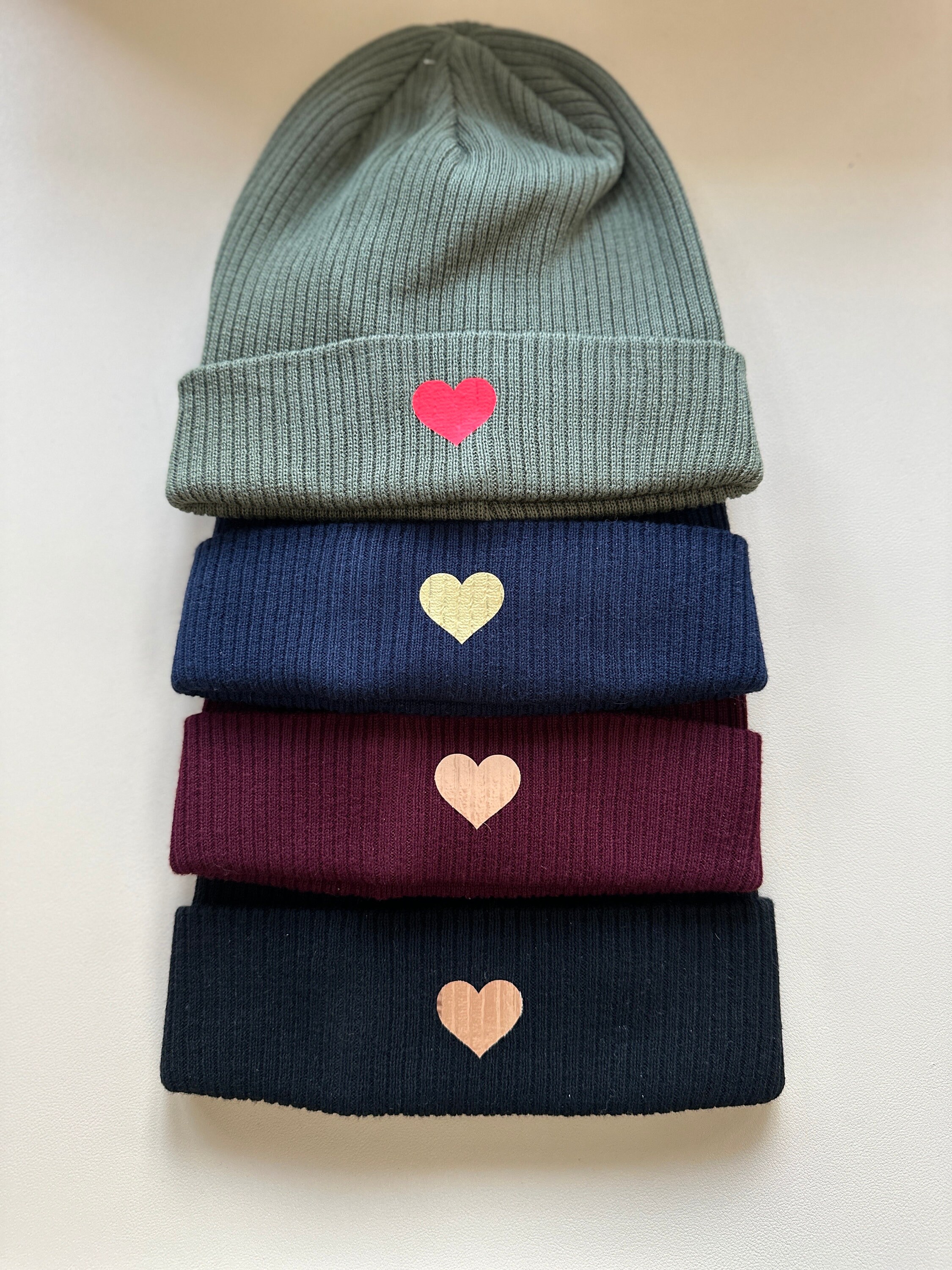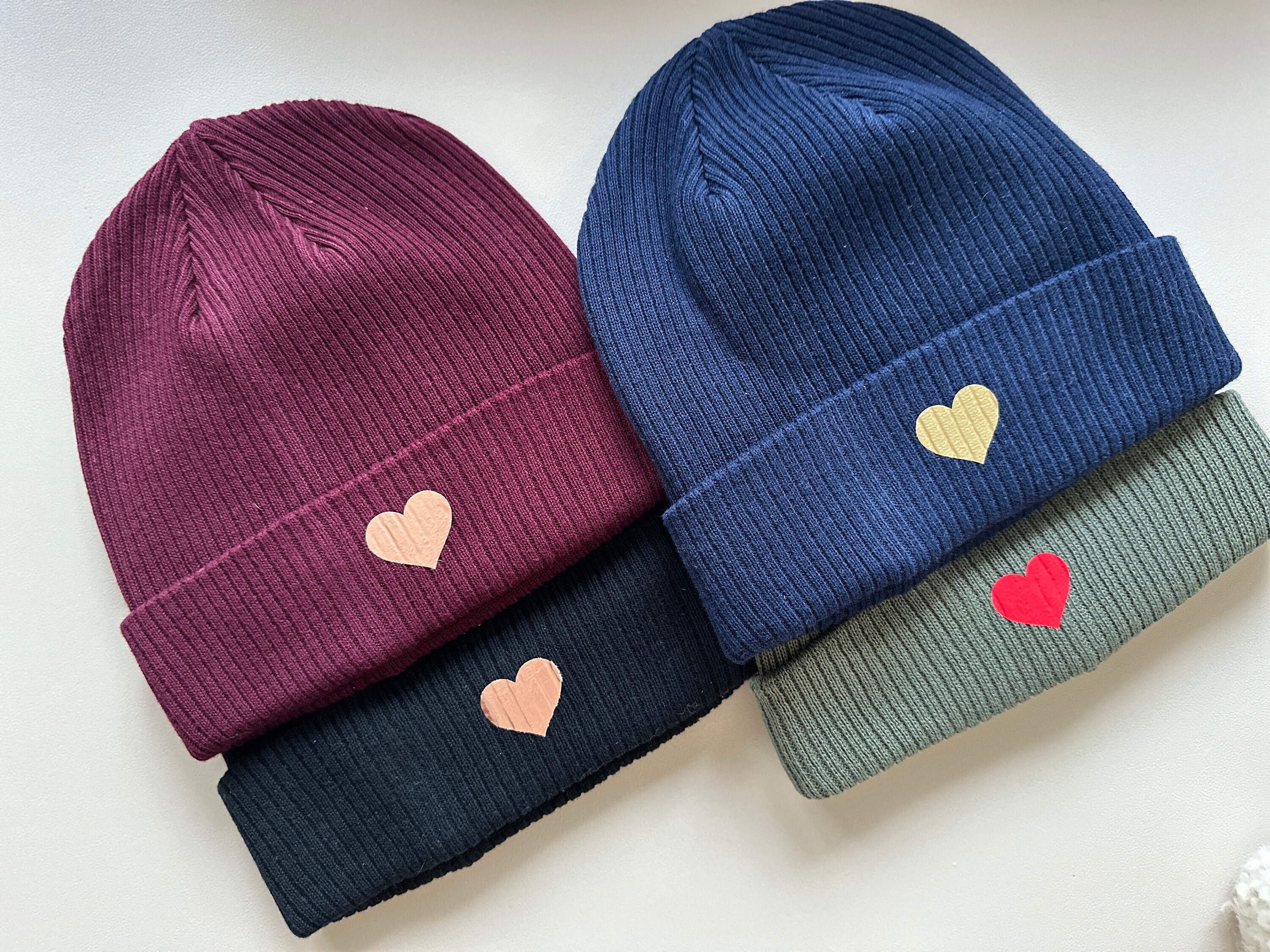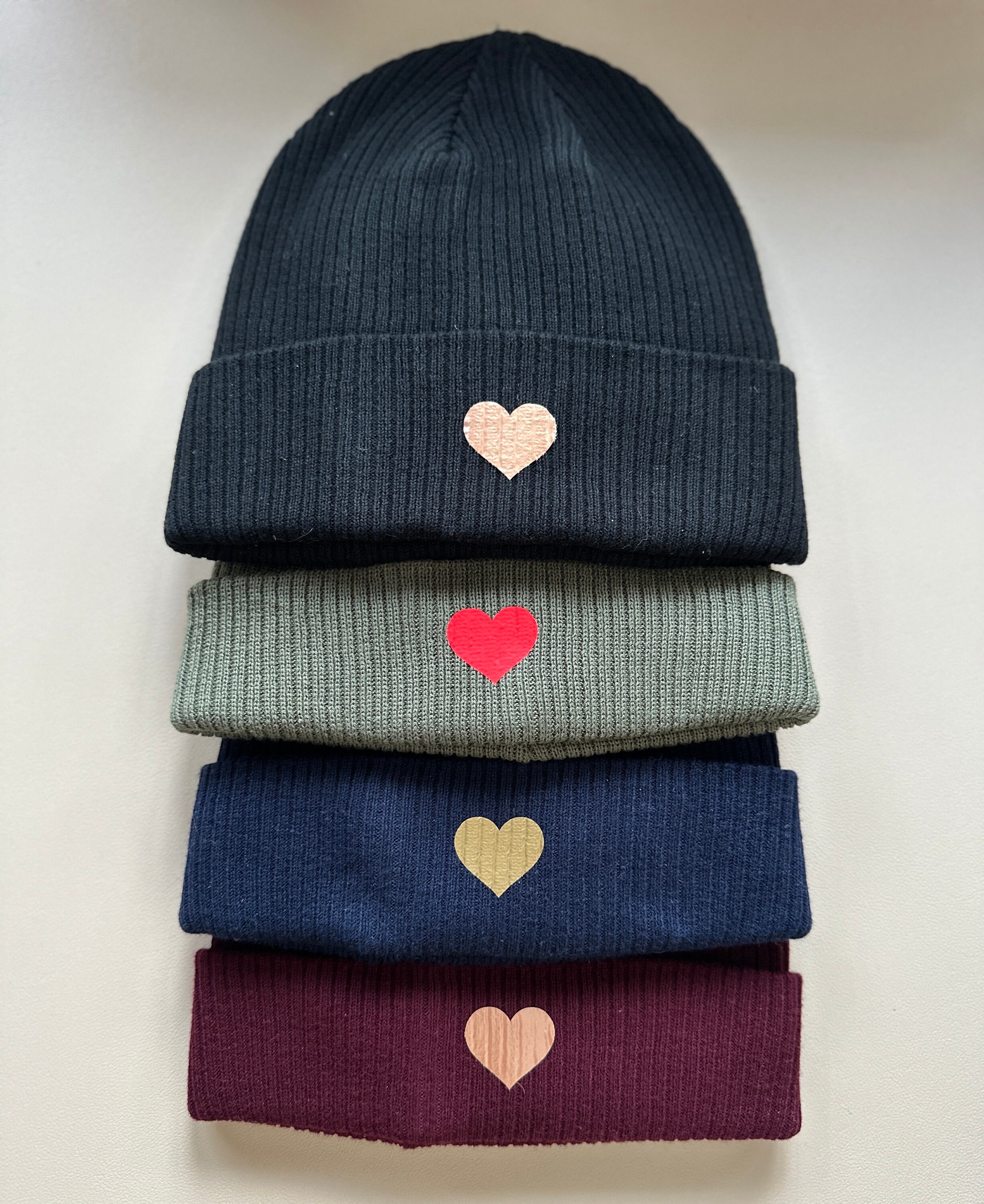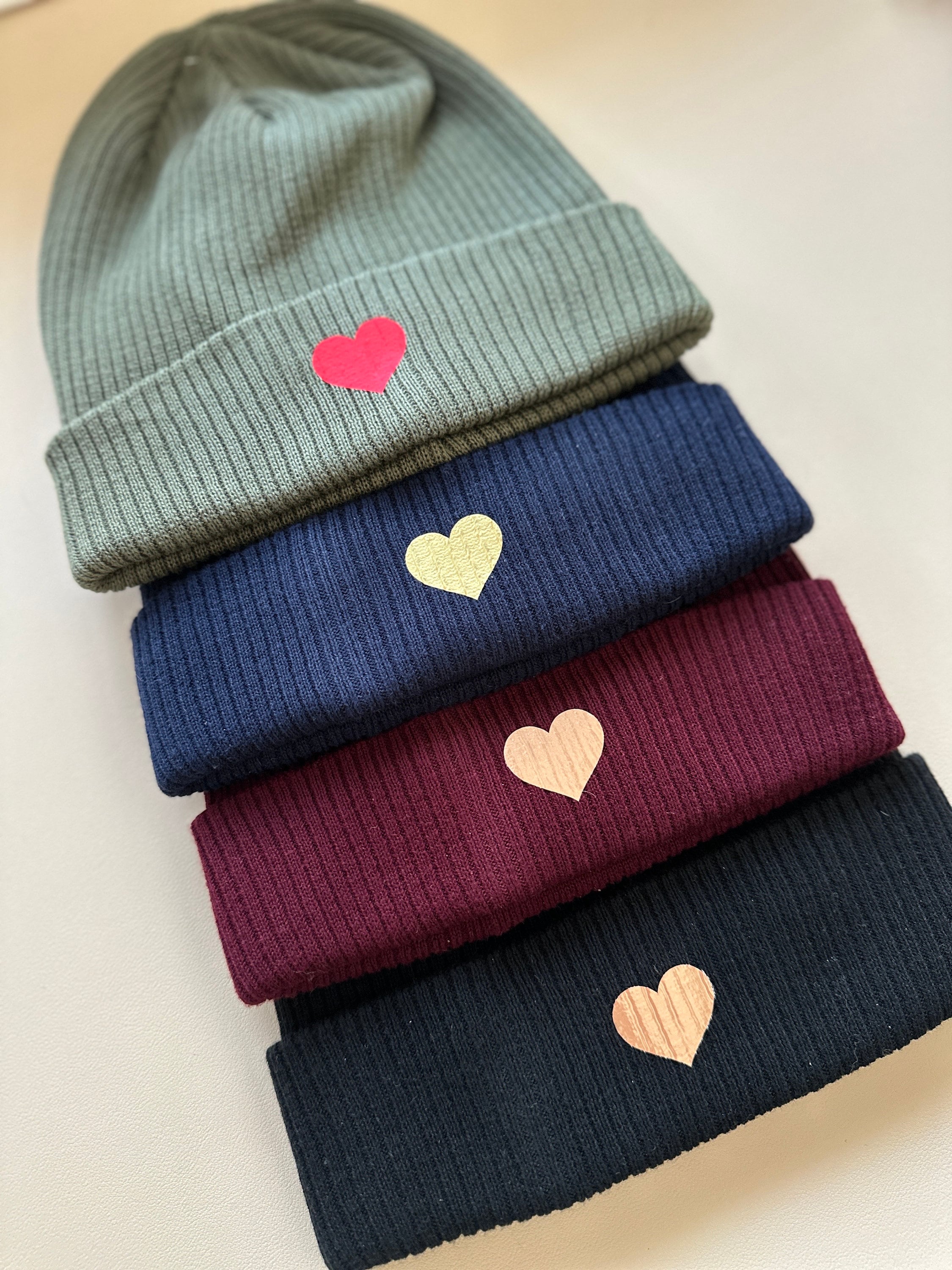 Super soft beanie with hearts made from organic cotton, unisex
