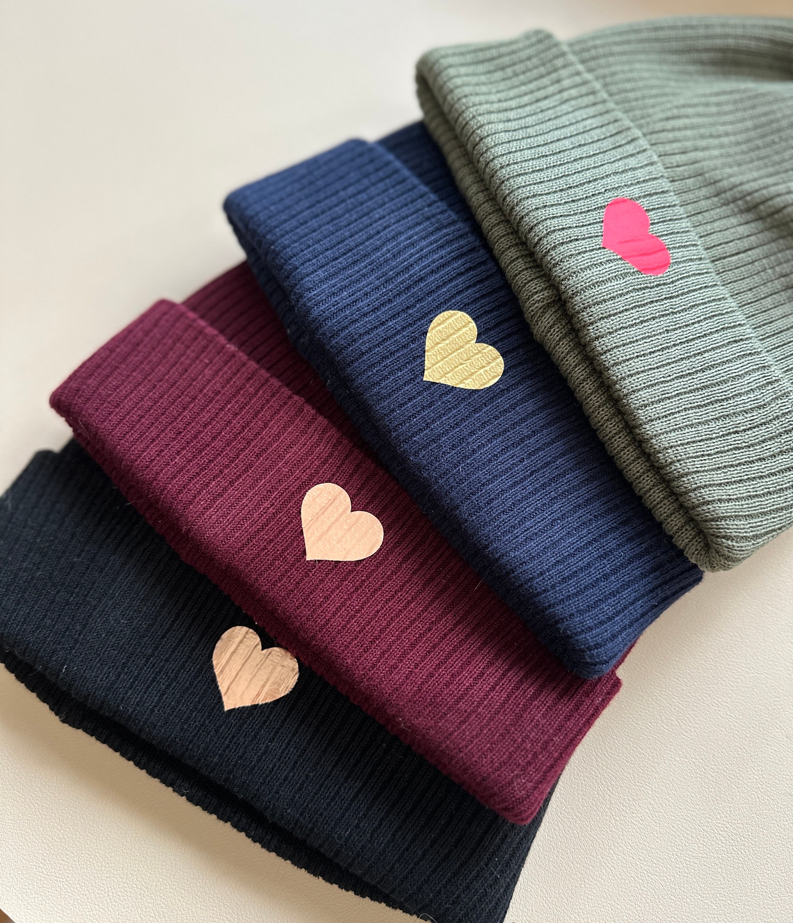 ♥️ Beanie in beige, black, dark blue, olive green, and burgundy