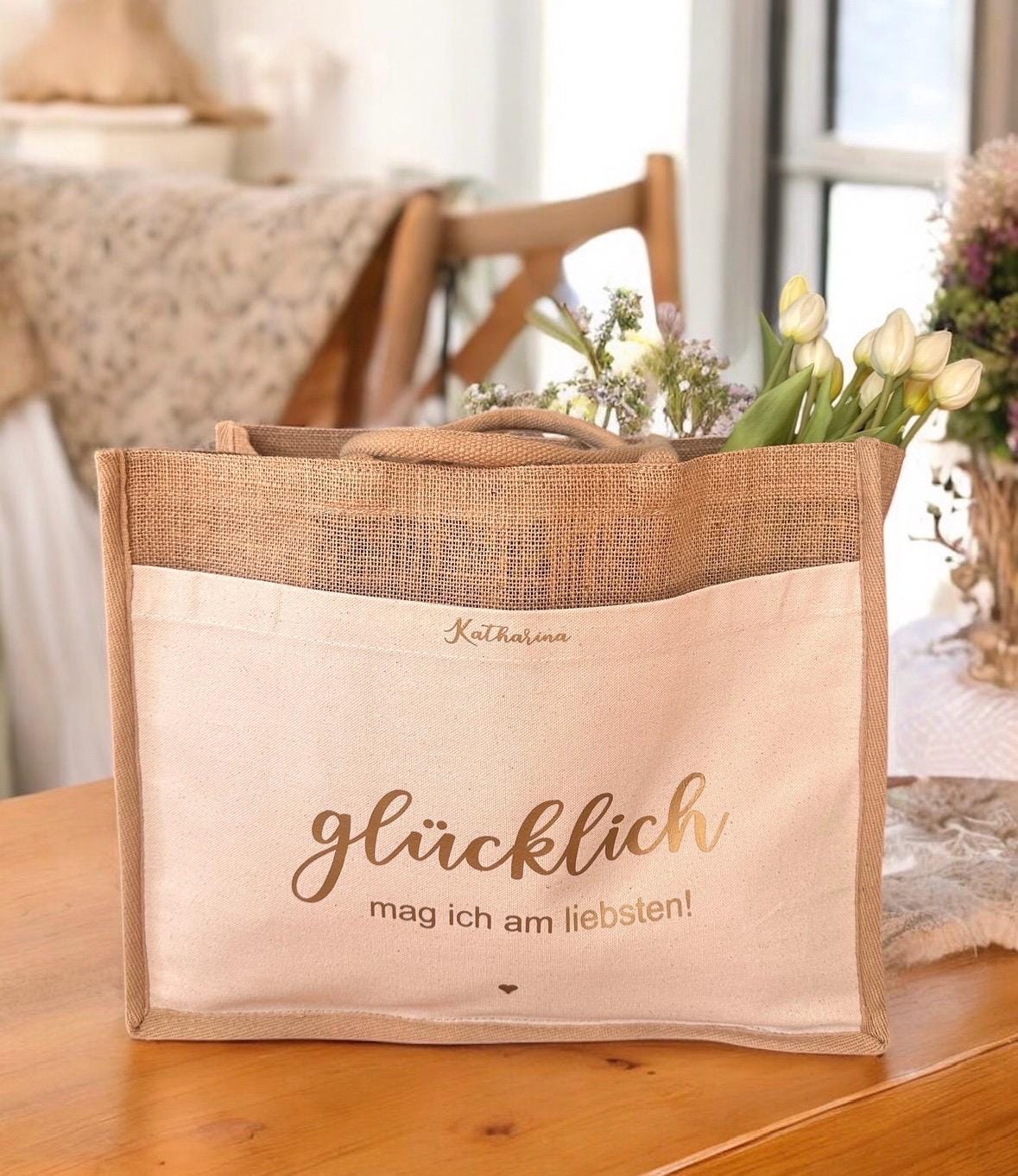 Our jute shopper, made from sturdy jute and cotton, is lovingly personalized with a name and a heart. Perfect as a gift for a girlfriend, boyfriend, partner, sister, aunt, or mother.