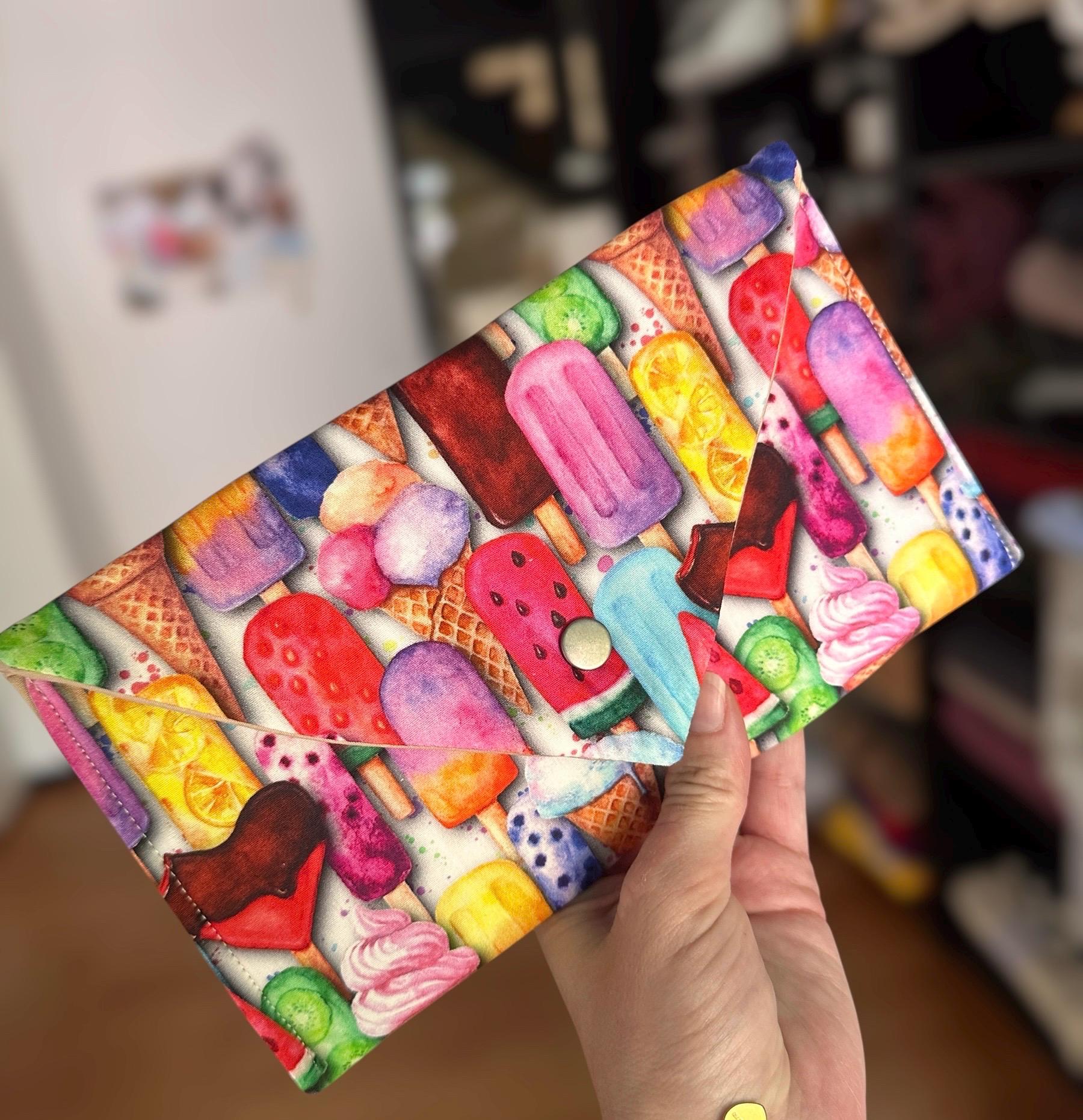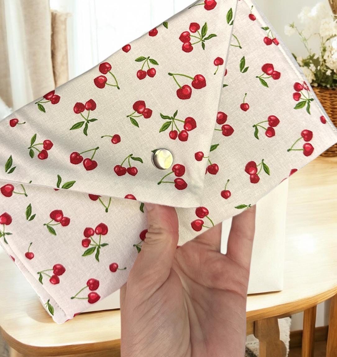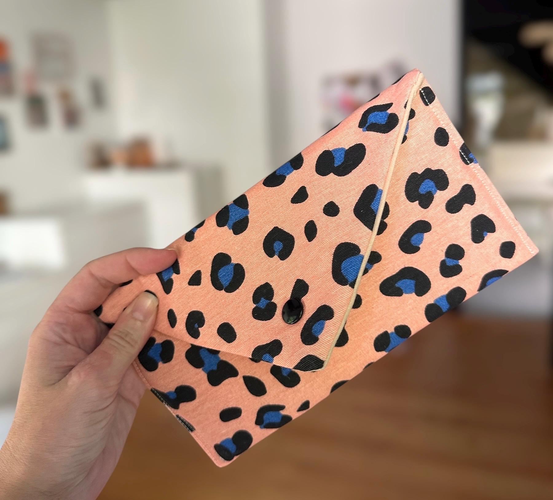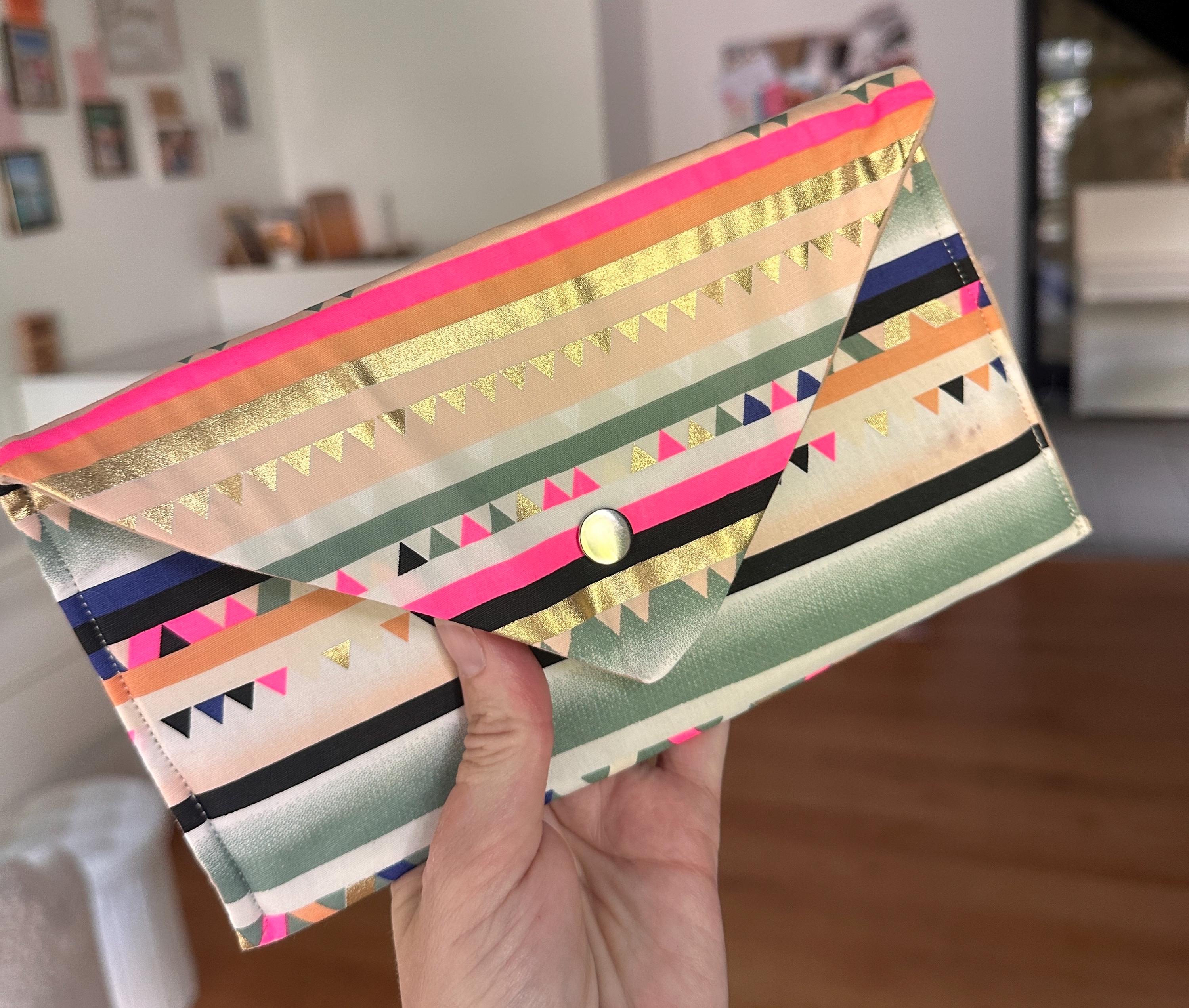 This cotton clutch is lovingly hand-sewn and can be used in a variety of ways: as a purse, cosmetic bag, or envelope clutch.