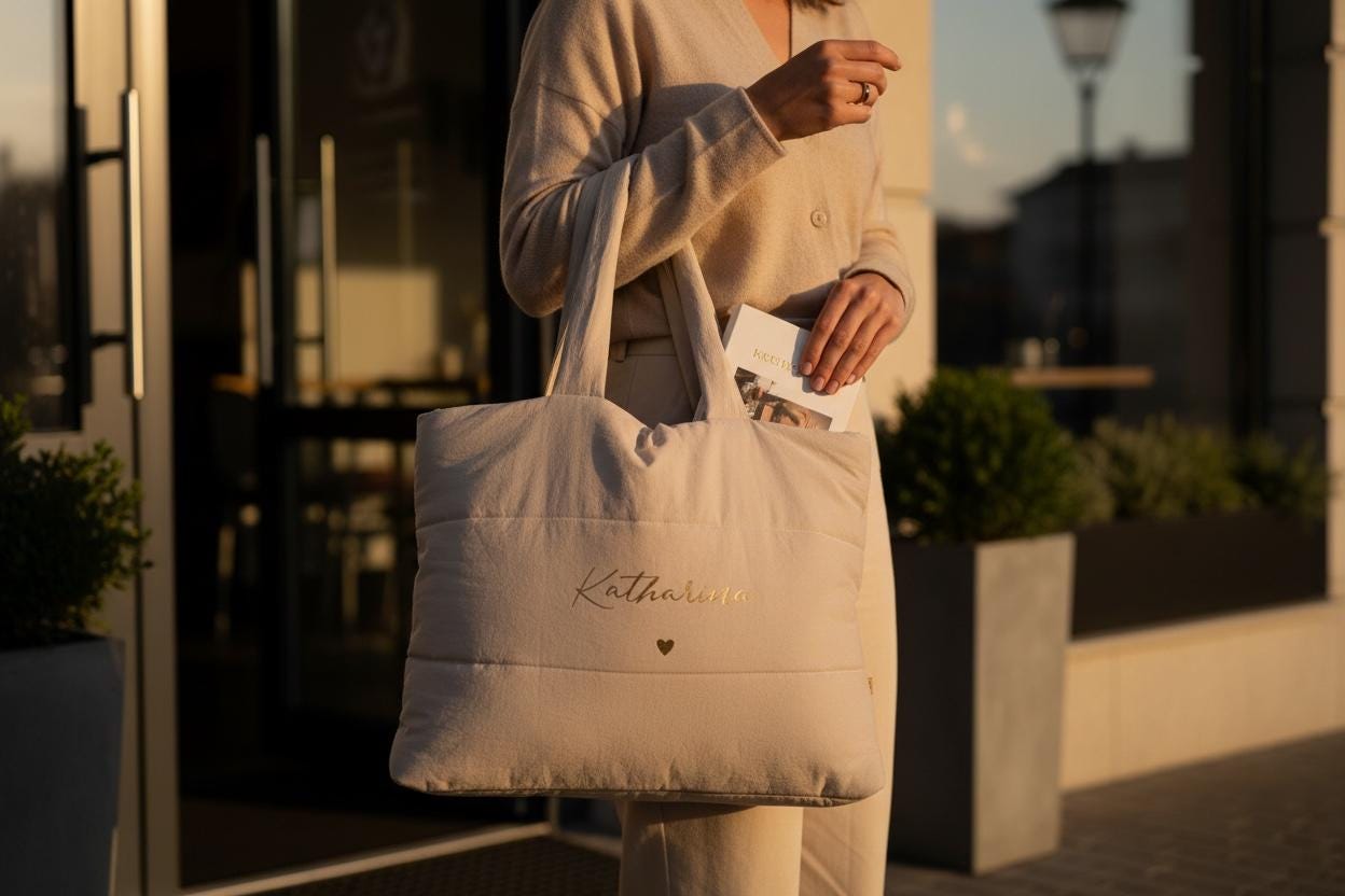 Our personalized quilted tote bag, made from recycled materials, is a stylish and versatile everyday companion. This high-quality quilted tote bag combines modern design, sustainability, and functionality, offering plenty of space for everything you need on the go.